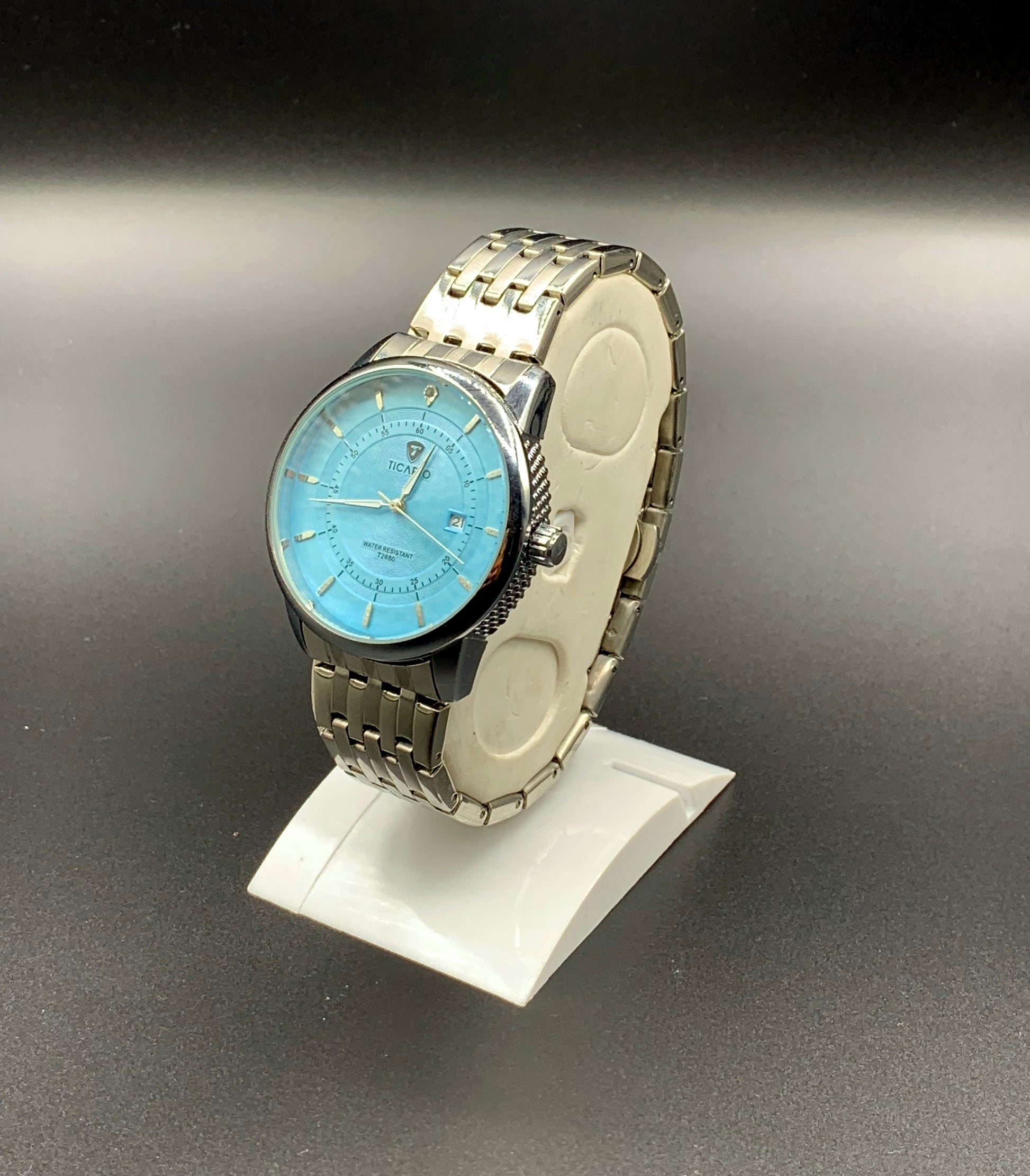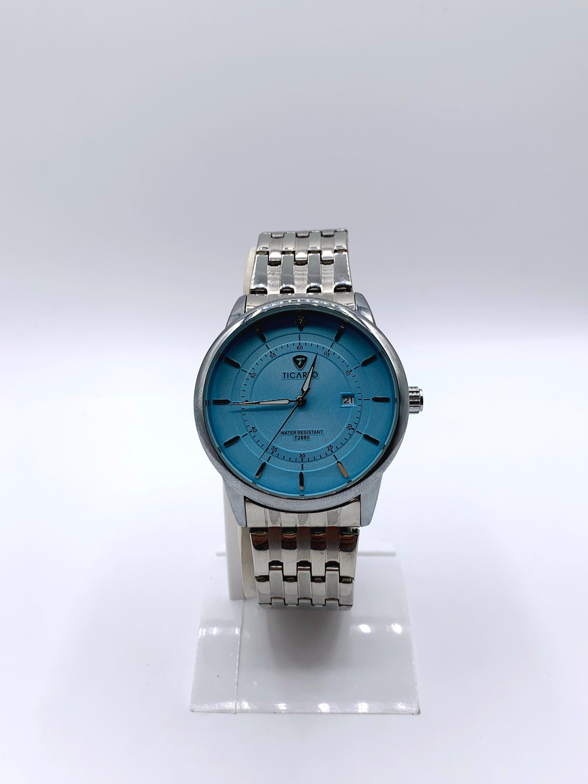 TICAO Men's Stainless Steel Watch with Light Blue Dial and Date Display